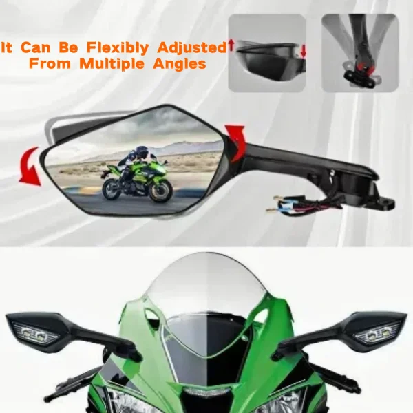 For Kawasaki NINJA250 NINJA400 ZX10R ZX25R ZX4RR ZX6R Motorcycle Adjustable Rearview Mirror Side Mirror with Signal Light